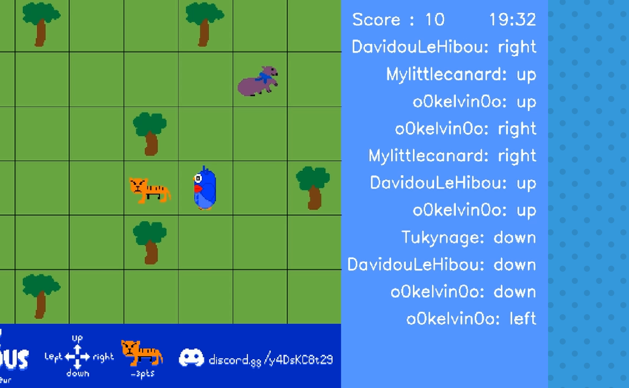 Les viewers peuvent lancer des commandes dans le chat pour déplacer le personnage sur une grille